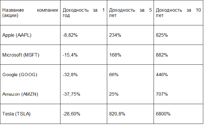 За 10 лет доходность акций топовых компаний огромна, но за последний год их стоимость существенно просела. В этом и заключаются риски вложения в фондовый рынок и другие подобные инструменты.
