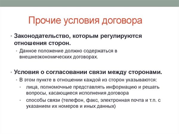 Прочие условия