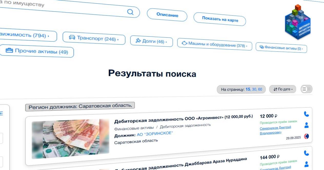 На «витрине» можно найти объявления о продаже недвижимости, транспорта, оборудования, земли и других активов компаний и частных лиц, признанных банкротами. Сервис бесплатный, регистрация не нужна — достаточно выбрать лот и связаться с представителем владельца.