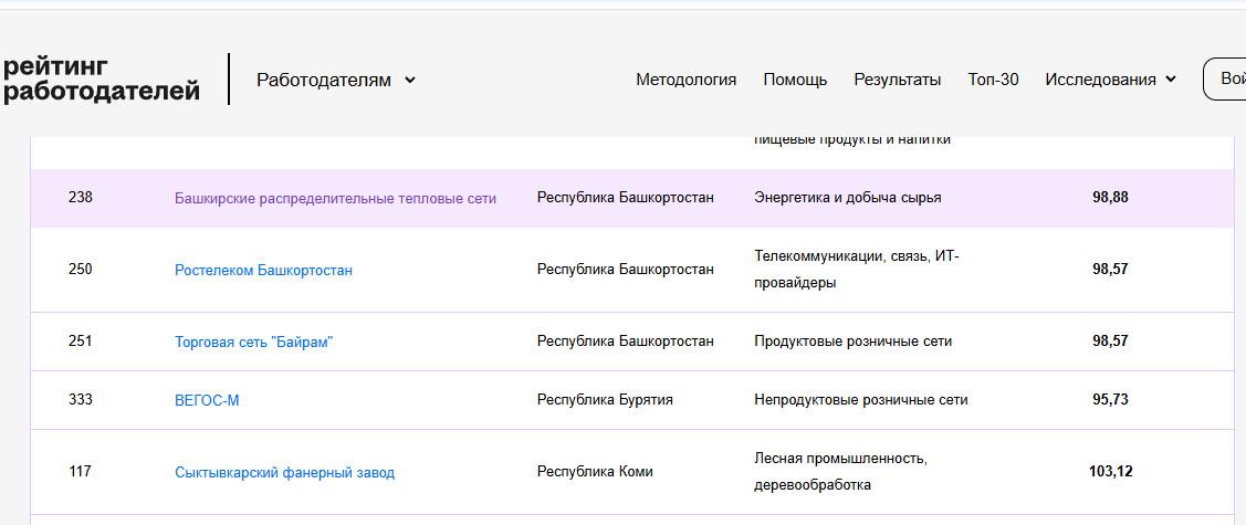 В рейтинг работодателей России по итогам года вошли 16 компаний из Башкирии