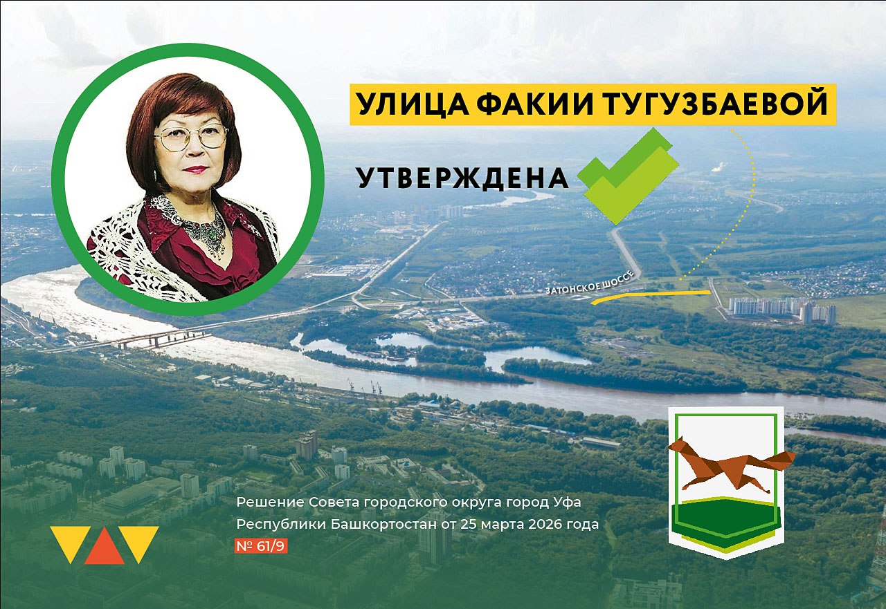 Факия Тугузбаева была лауреатом премии имени Салавата Юлаева и более 20 лет возглавляла детский журнал «Акбузат». Новое название появится на карте города в рамках развития городской застройки.