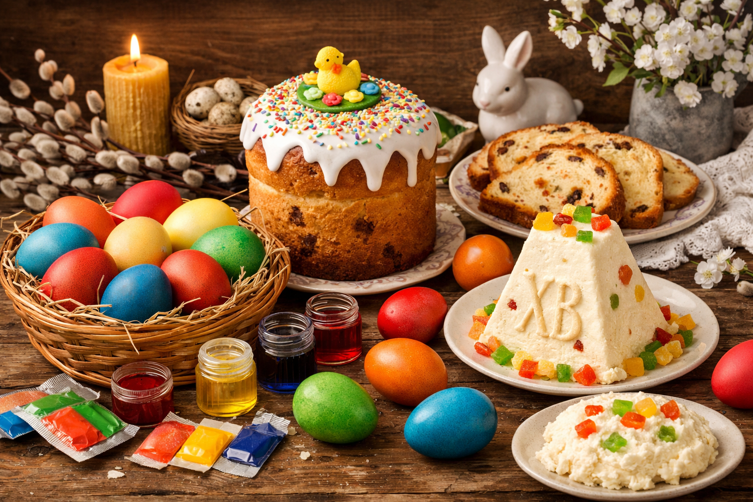 Набор из кулича, десятка яиц и красителей в 2026 году обойдется в среднем в 563 рубля.