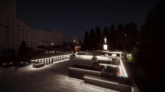 В сквере установят новое освещение, высадят деревья и газон, обустроят тротуары. Кроме того, планируют отремонтировать фонтан и провести реставрацию памятника Феликсу Дзержинскому.